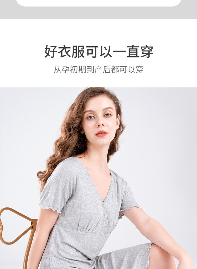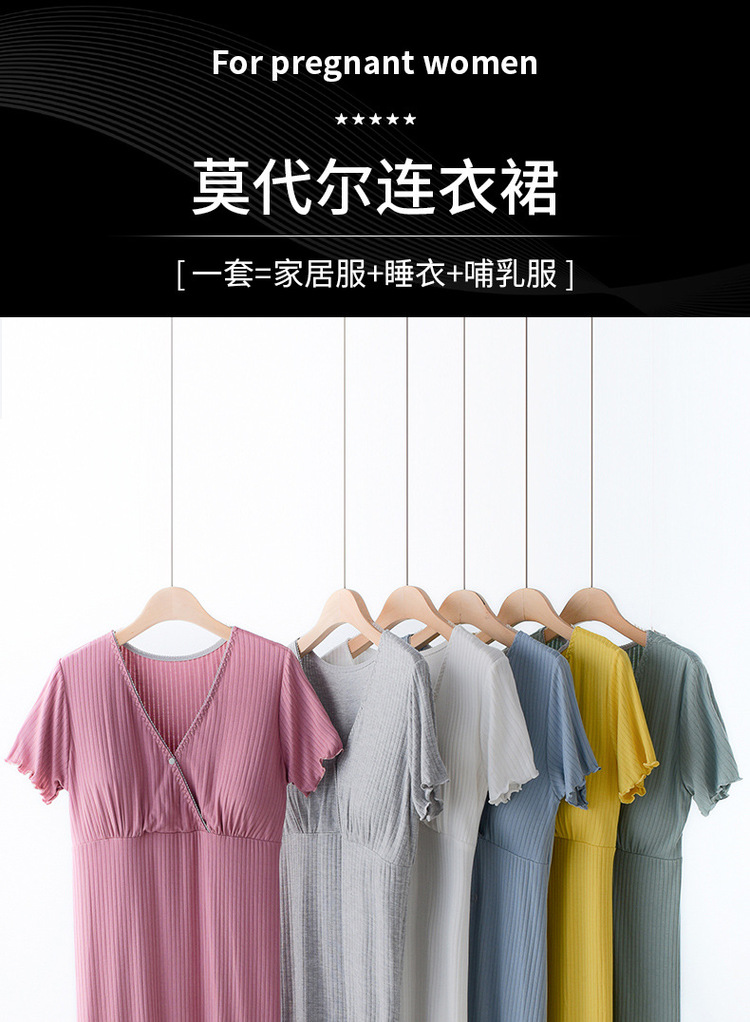 Three Sons孕妇连衣裙夏季产后哺乳衣连衣裙夏秋季外出时尚夏季