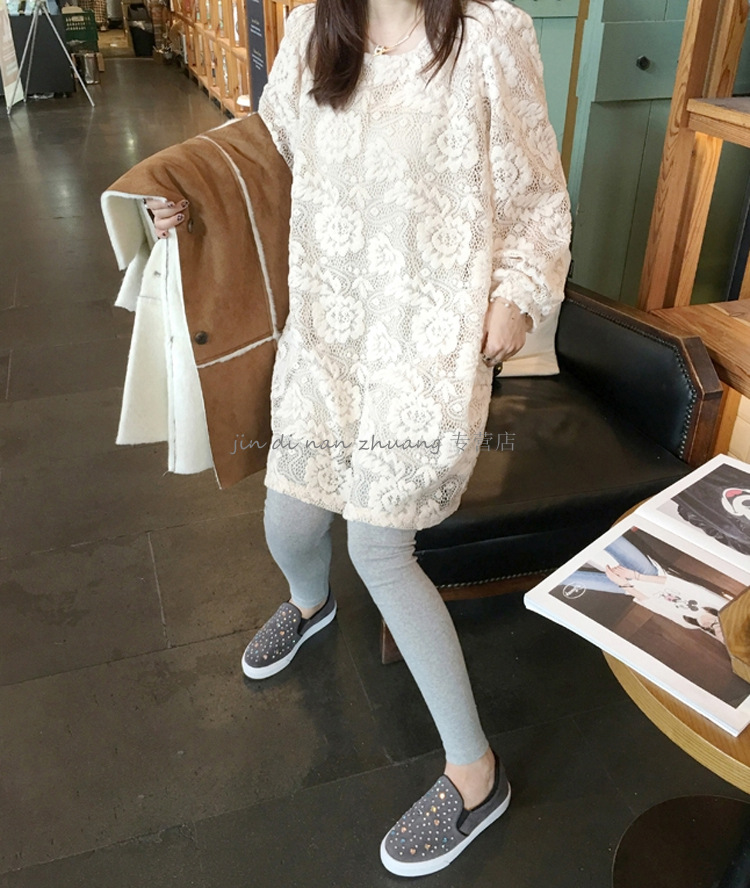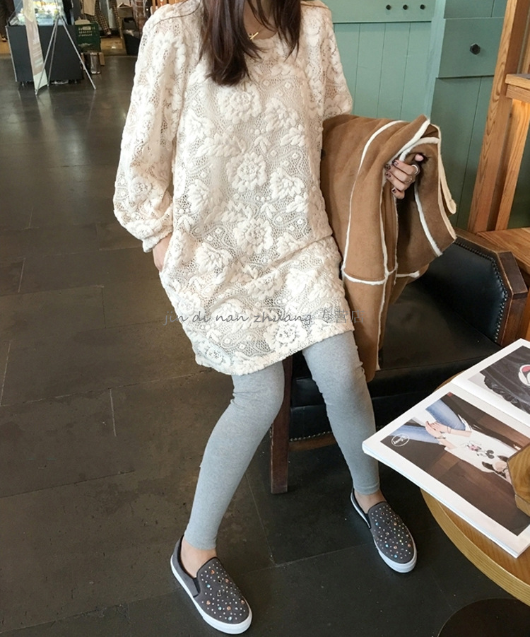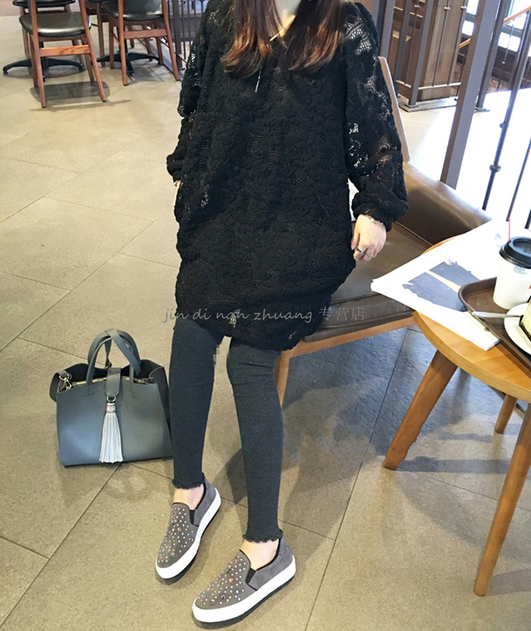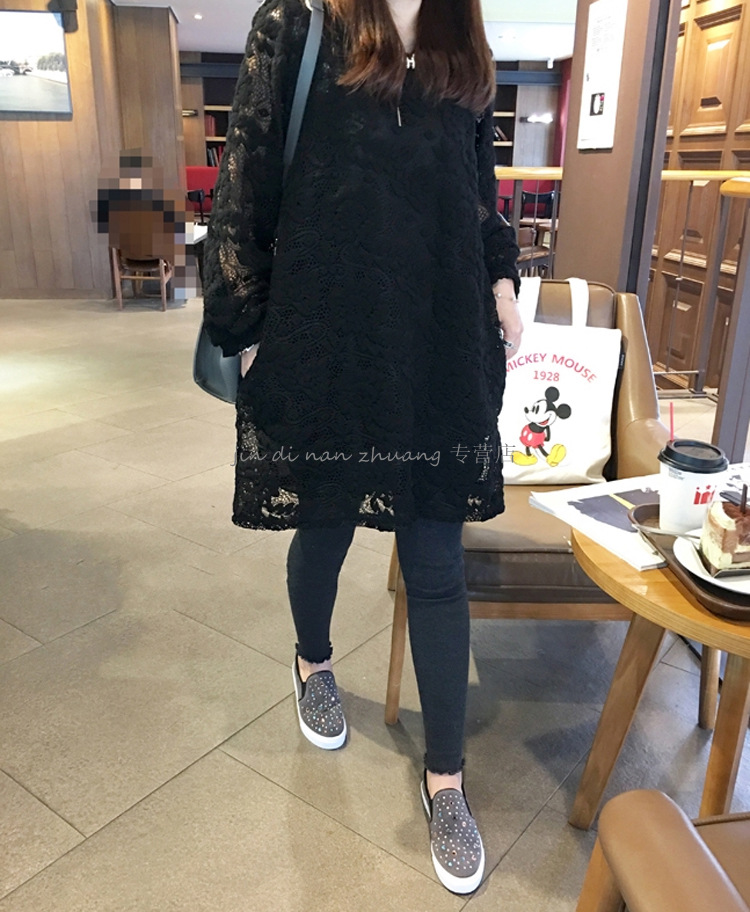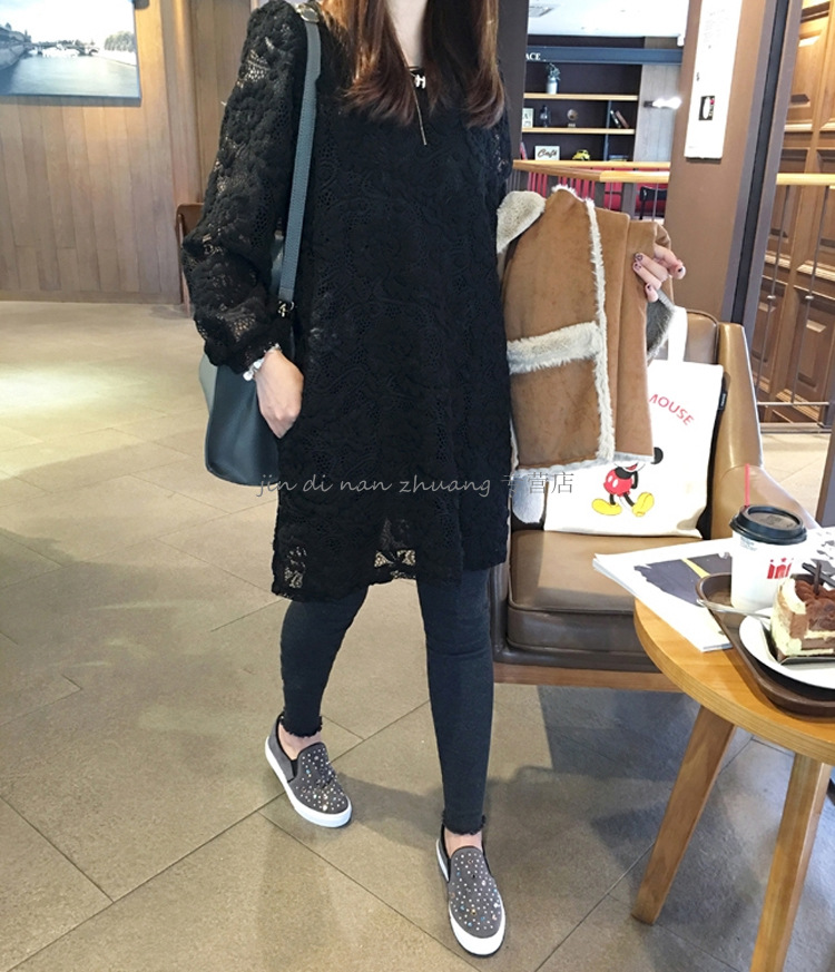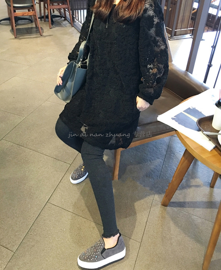 迪鲁奥(DILUAO) 秋装宽松型大码孕妇装 加肥加大镂空蕾丝连衣裙 中长款袖上衣