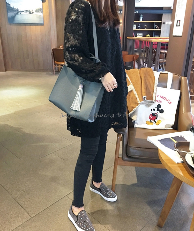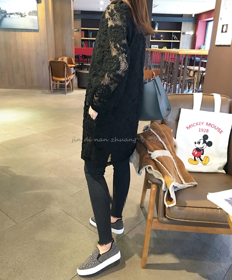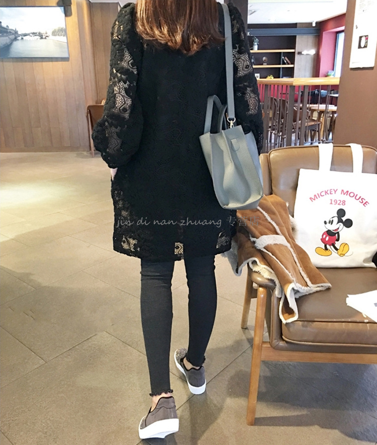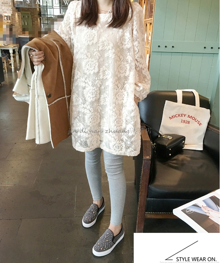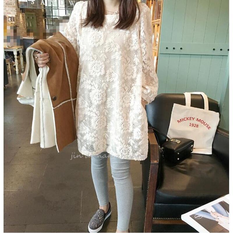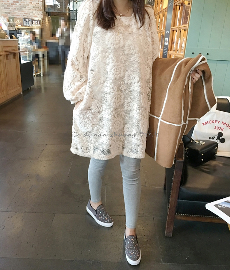 迪鲁奥(DILUAO) 秋装宽松型大码孕妇装 加肥加大镂空蕾丝连衣裙 中长款袖上衣
