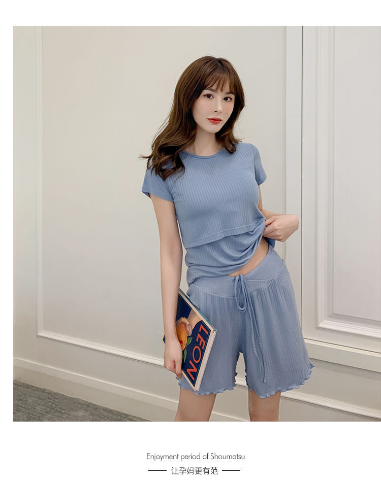 Three Sons孕妇装套装大码市场短袖t恤套装外出春夏季上衣宽松短