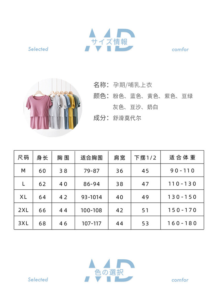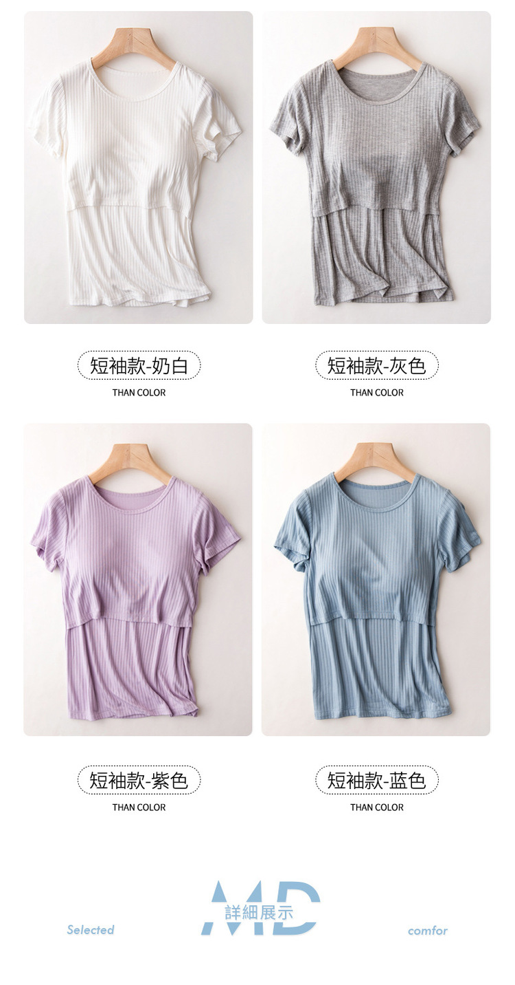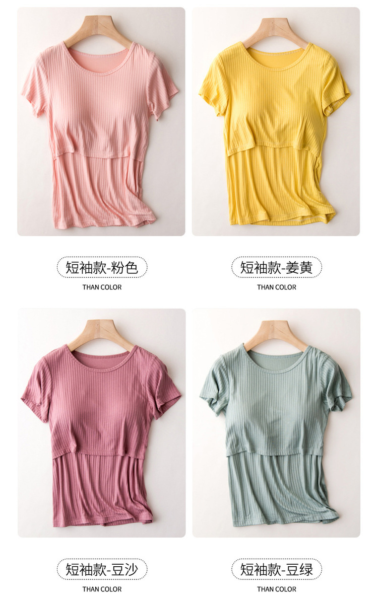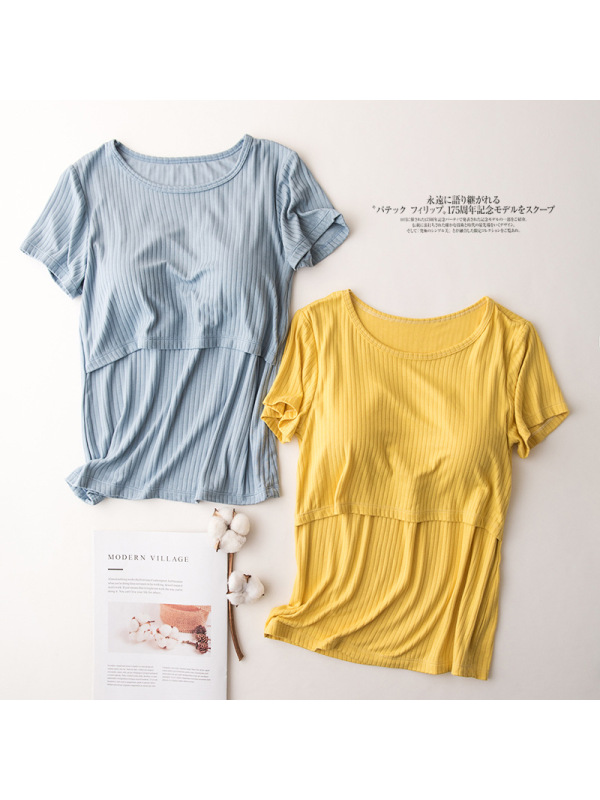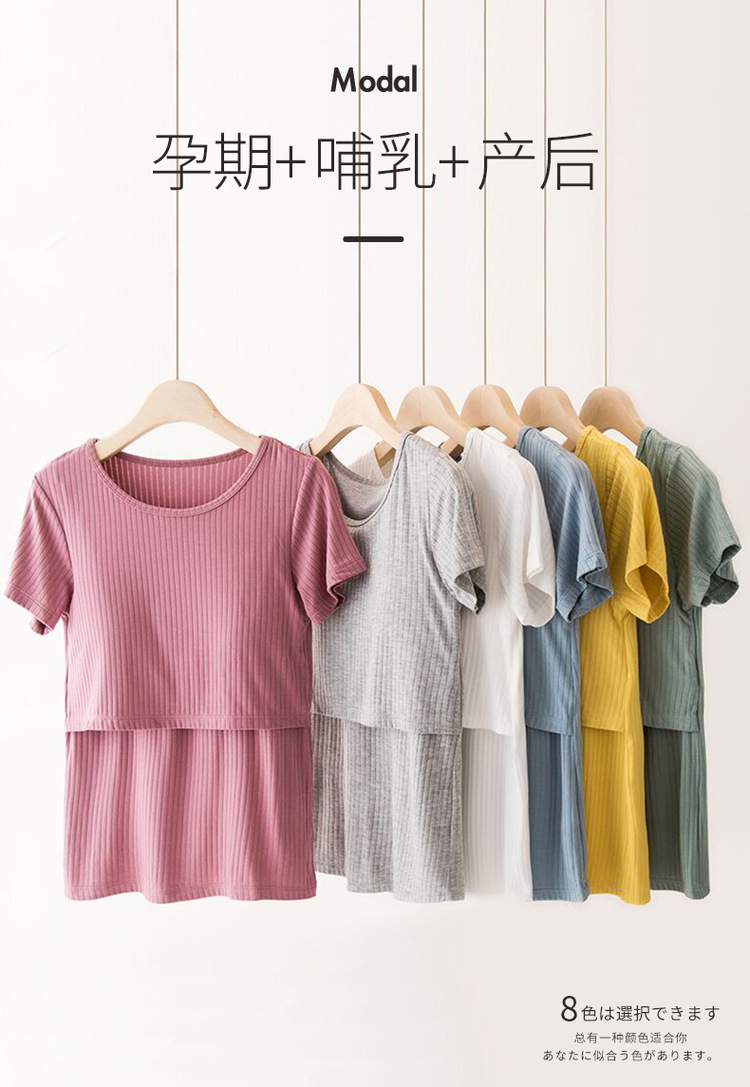 Three Sons孕妇短袖莫代尔哺乳衣外出上衣喂奶薄款产后短袖T恤半