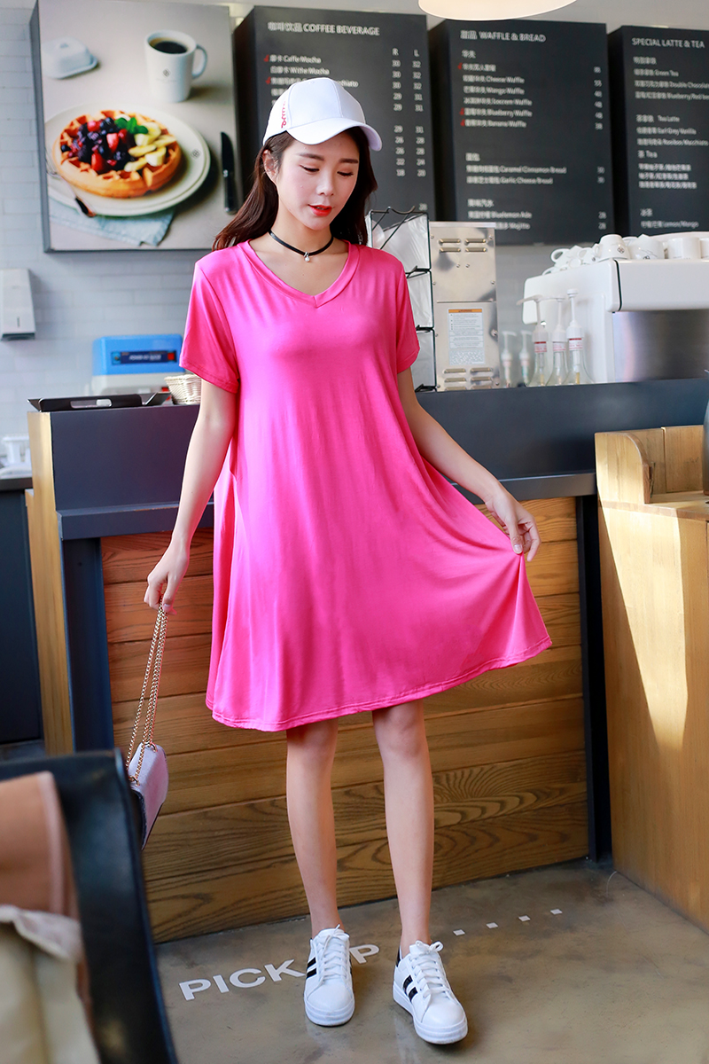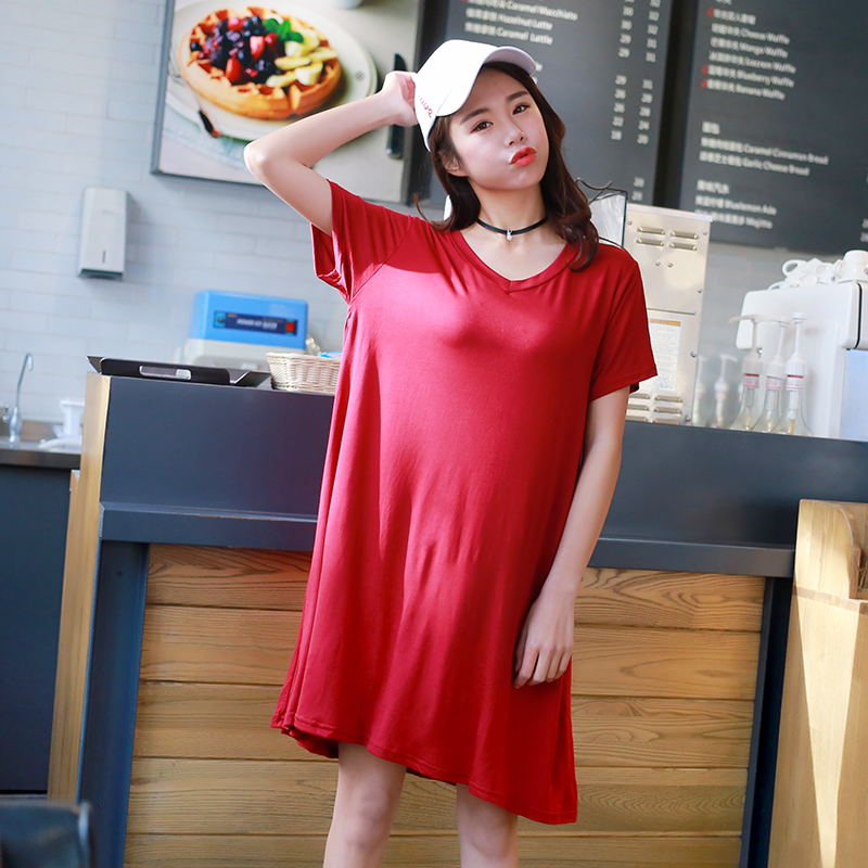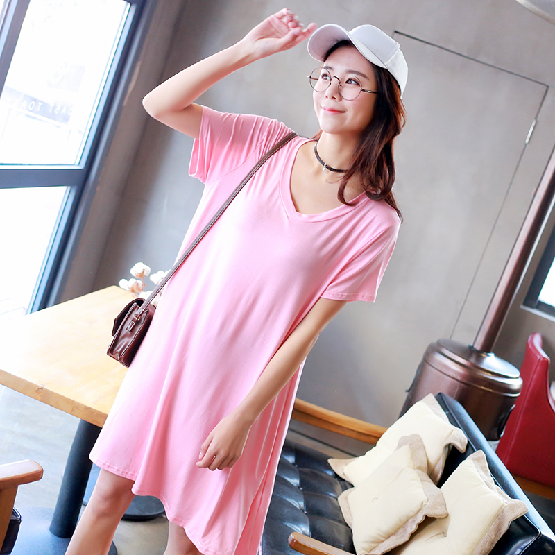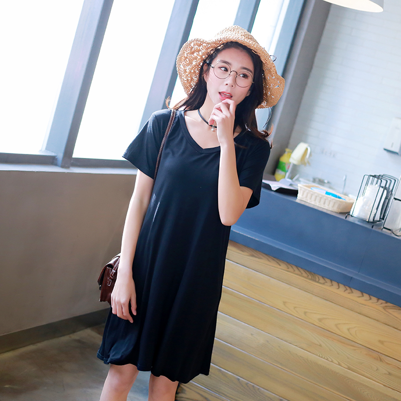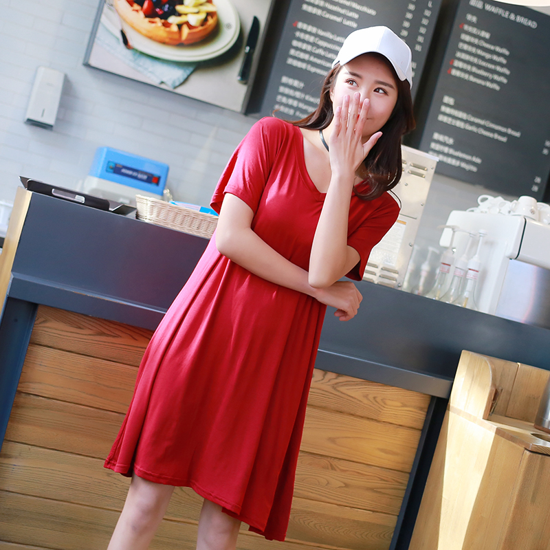 YIBUSHENG2023韩版莫代尔加肥加大码连衣裙女孕妇裙宽松中长款套头大摆裙